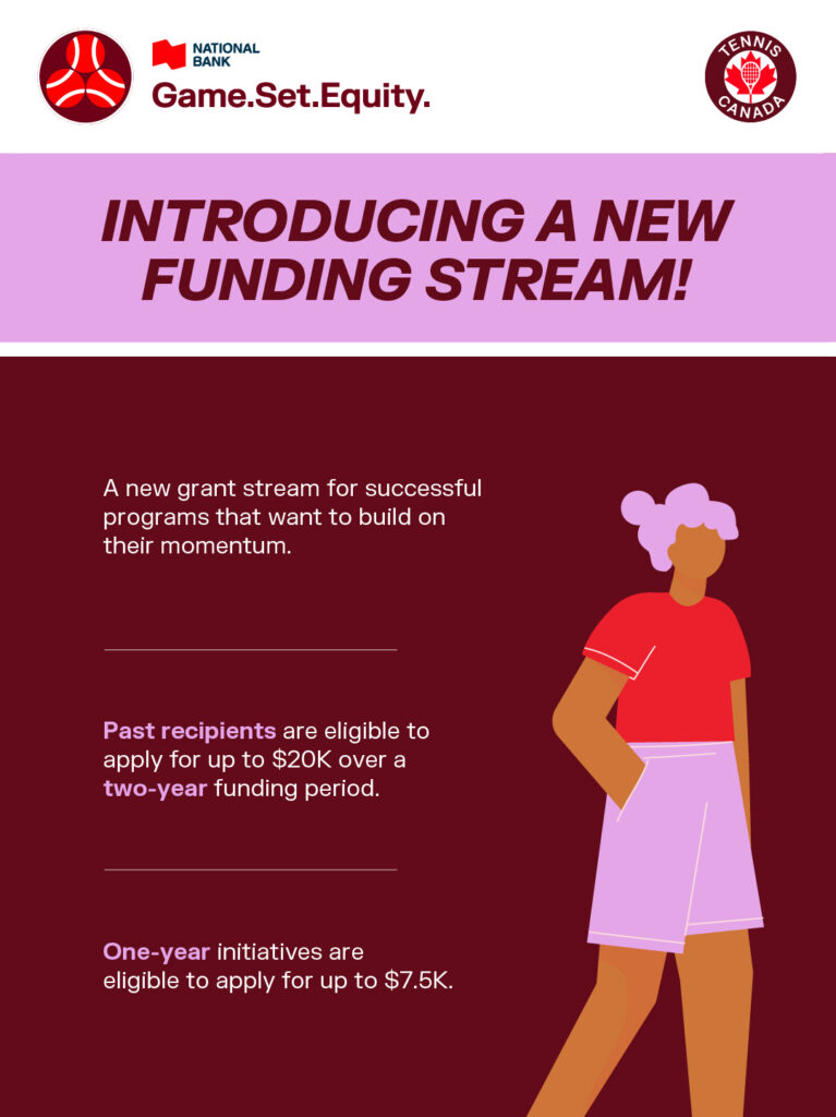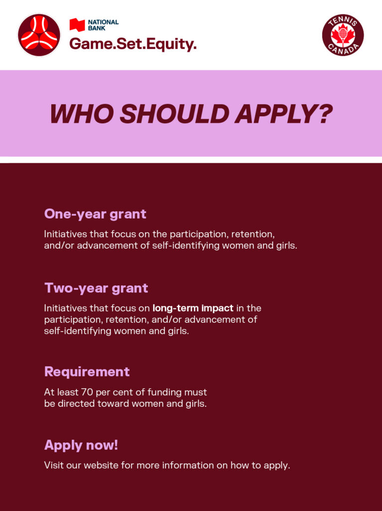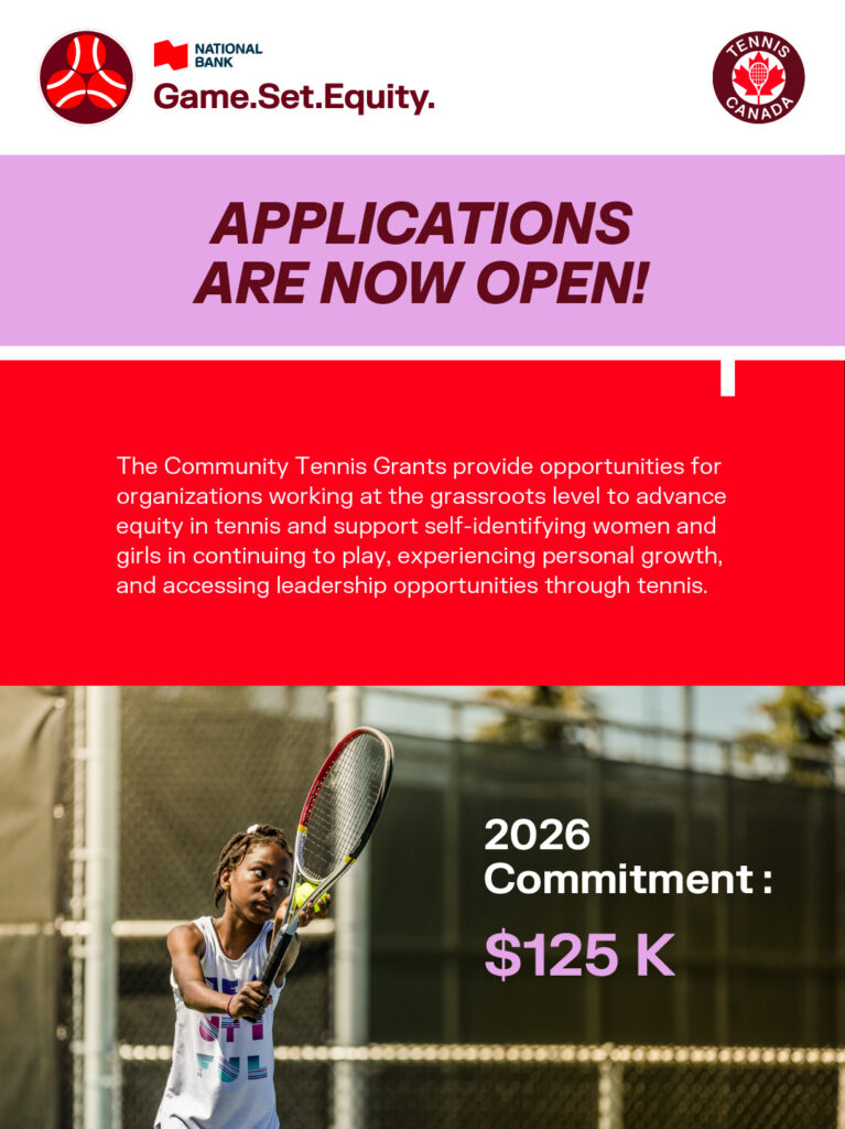 The GSE Community Tennis Grants, presented by National Bank, are returning this year with a new two-year grant available for past recipients. One-year grants are available, too, as Tennis Canada’s and National Bank’s investment grows to $125,00.